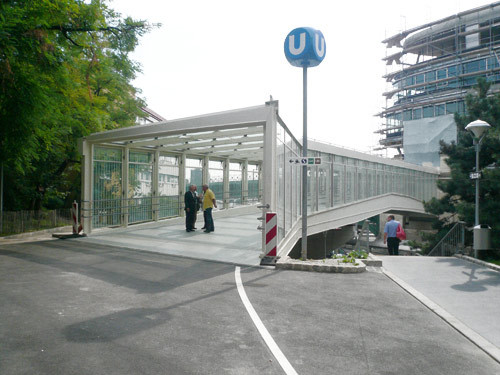 An einem der verzwicktesten Verkehrsknoten Wiens, an dem sich ein Autobahnzubringer und zwei ehemalige Stadtbahnlinien kreuzen, überhaupt an eine solche Fußgängerverbindung zu denken war eine mutige Entscheidung der Stadtplanung. Funktionell ist sie zwar naheliegend: Immerhin erspart sie den Bewohnern eines großenWohngebiets einen mühevollen Ab- und Wiederaufstieg auf dem täglichen Weg zur U-Bahn. Stadtgestalterisch bestand allerdings die Gefahr, das visuelle Chaos an dieser Stelle noch zu erhöhen und das Ensemble der beiden denkmalgeschützten Brücken der Wagnerschen Stadtbahn zu ruinieren.