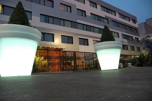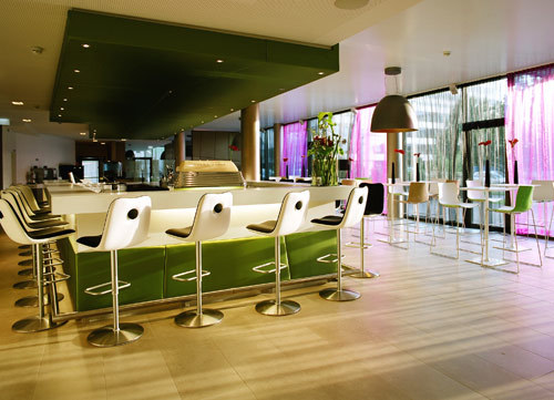 Die gegliederte Alufassade vermittelt schon von außen den Eindruck von Großzügigkeit, Weiträumigkeit und Dynamik. Sie zeigt, dass ein vom Grundriss her höchst effizientes Gebäude eine sehr abwechslungsreiches Erscheinungsbild haben kann. Die Einzigartigkeit innerhalb der Budget-Hotels schafft außerdem einen hohen Wiedererkennungswert. Im Inneren bietet das „hotel for people in motion“ ein raffinierte Raumaufteilung. Die öffentlichen Bereiche bieten weitläufigen Raum, der durch unterschiedliche Ausgestaltung auch Zonen trotzdem ganz unterschiedlicher Atmosphäre aufweist. Die weiße Farbe für Bar und Tische und der helle Boden schaffen eine freundliche Grundstimmung, Sessel – alle aus einer Designlinie aber in unterschiedlicher Ausprägung - und Vorhänge liefern die Farbe, die den Raum freundlich wirken lässt. Die hochwertigen Materialien sind reduziert aber durchgängig eingesetzt und folgen dem Farbkonzept, dass für das gesamte Hotel entwickelt wurde. Die Ausstattung der Zimmer wurde speziell für „roomz vienna“ entworfen, liefert alle essentiellen Funktionen und lässt trotzdem auch auf kleinem Raum viel Bewegungsfreiheit für den Gast. Durchdachte Details vom variablen Bett über den multifunktionalen Schreibtisch bis hin zur effektiven Beleuchtung greifen auch hier den durchgehenden Designansatz auf.