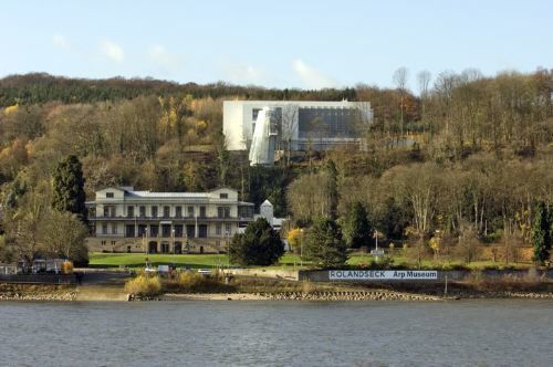 Vor sieben Jahren konnte in einem prachtvollen, südlich von Bonn am Rhein gelegenen spätklassizistischen Gebäude, dem ehemaligen Bahnhof Rolandseck, das Arp-Museum eröffnet werden. Wegen der beschränkten Räumlichkeiten für Sammlung und Ausstellungen hatte man schon vorher den New Yorker Architekten Richard Meier mit dem Bau einer Erweiterung beauftragt. Vor wenigen Tagen nun konnte der neue Museumskomplex eingeweiht werden. Überschattet wurde die Feier von einem Kunststreit. Unter anderem bezichtigten Kritiker den Trägerverein des Museums wegen des Verkaufs von Arp-Duplikaten, darunter auch postum hergestellte Güsse, des Handels mit Reproduktionen. Diese und andere Vorwürfe, die noch geklärt werden müssen, dürften allerdings Architekturliebhaber und Kunstfreunde von einem Besuch des in einer der schönsten Landschaften am Mittelrhein situierten Museums kaum abhalten.
