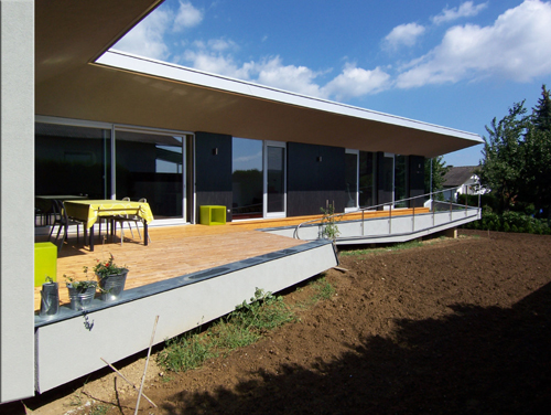 Das Grundstück war vorhanden. Andrea und Wolfgang Paschinger von p2 architektur setzten in den flachen Hang einen schlichten Wohnwinkel. Um dem elterlichen Haus nicht die Aussicht zu nehmen, duckt es sich in den Grund. Nur das letzte Stück entschwebt.