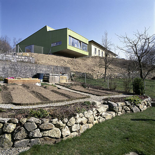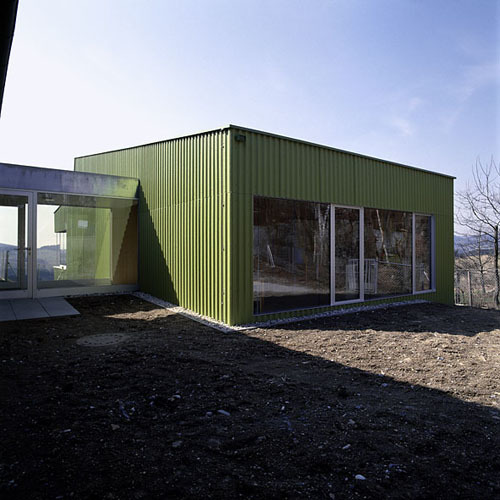 Planungsbeginn im Mai, Baubeginn zwei Monate später, Fertigstellung im Oktober und ein Budget von 180.000 Euro: Diese Schlagworte allein beschreiben eine beachtliche Leistung. Die Erweiterung des bestehenden Kindergartens in Neumarkt im Mühlkreis ist jedoch mehr als das bloße Meistern ungünstiger Voraussetzungen. Die im Ort ansässigen Architekten Peter Schneider und Erich Lengauer haben ein ungewöhnliches, ja sinnliches Objekt geschaffen. Mit seiner lang gestreckten, in einem großen Panoramafenster mündenden Form, dem breiten Oberlicht und der grünen Fassade sieht der Kindergartenzubau aus wie ein Krokodil. Da waren sich von Beginn an alle sicher: Kinder, PädagogInnen ebenso wie die NachbarInnen.