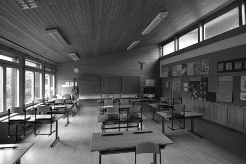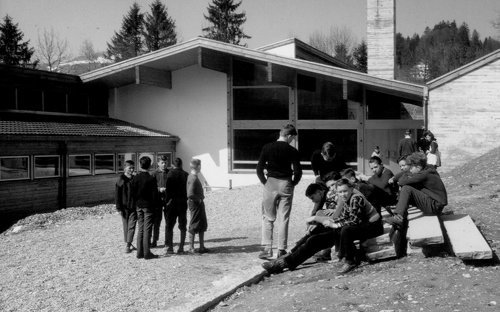1964 plante und zimmerte teilweise eigenhändig Rudolf Wäger sein legendäres Würfelhaus in Götzis, eine, wie er sagt, autonome Leistung: aus der „Not“ der minimalen Mittel, im bewussten Gegensatz zur damals lokal gängigen Zimmerei und wohl auch durch die Schulung seines Bruders Heinz in Ulm inspiriert, wie der Max-Bill-Hocker in der ursprünglichen Möblierung belegt. Autonome Leistungen waren auch Leopold Kaufmanns Volksschule von 1960 in Reuthe sowie die immer noch faszinierende Erweiterung der Kirche in Brand von 1961 – beides in Kooperation mit Helmut Eisentle und Bernhard Haeckel. Kaufmann fiel mit seinen Arbeiten im Bregenzerwald aber so aus dem gesellschaftlichen Rahmen, dass er sein Büro nach Dornbirn verlegte. Nur zur Erinnerung: 1962 gab es in Österreich seit fünf Jahren Fernsehen, im „Ländle“ aber ein gesetzliches Twist-Tanzverbot in der Öffentlichkeit und eine streng katholische Filmzensur ...