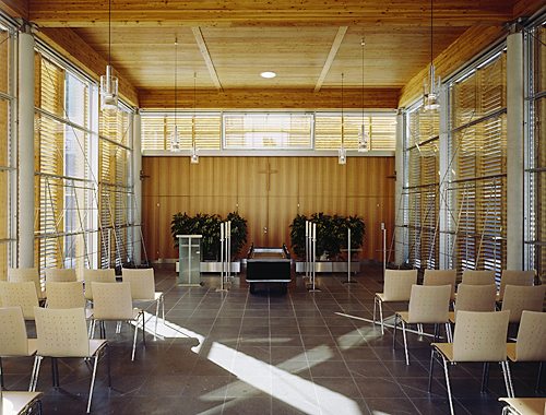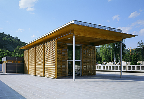 Auch der Außenraum um das Gebäude wurde sehr schlicht gestaltet. Ein eingefasster Hof, der durch Nichts ablenkt, um sich voll und ganz seinen Gedanken und Erinnerungen hingeben zu können.