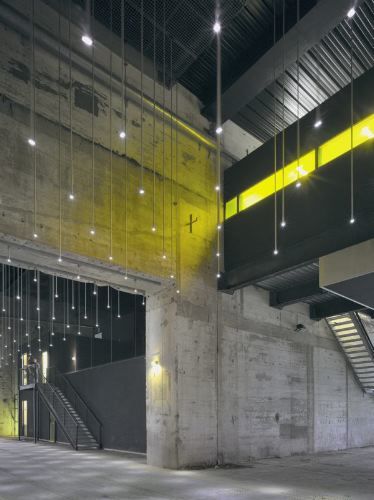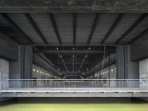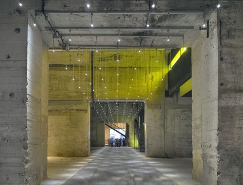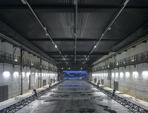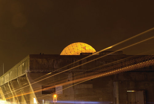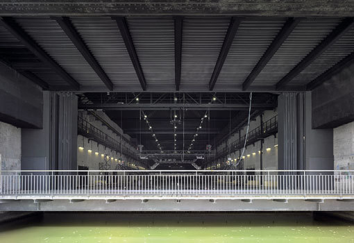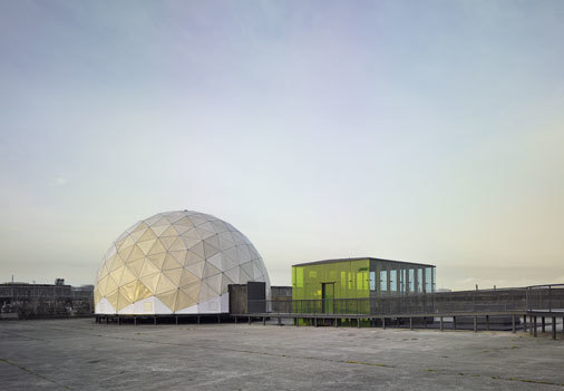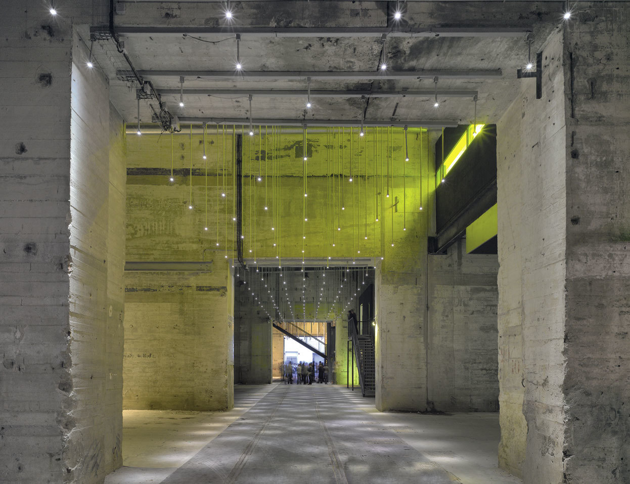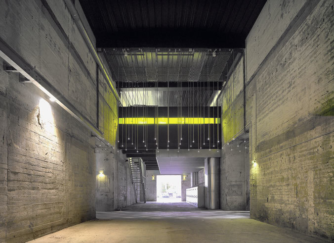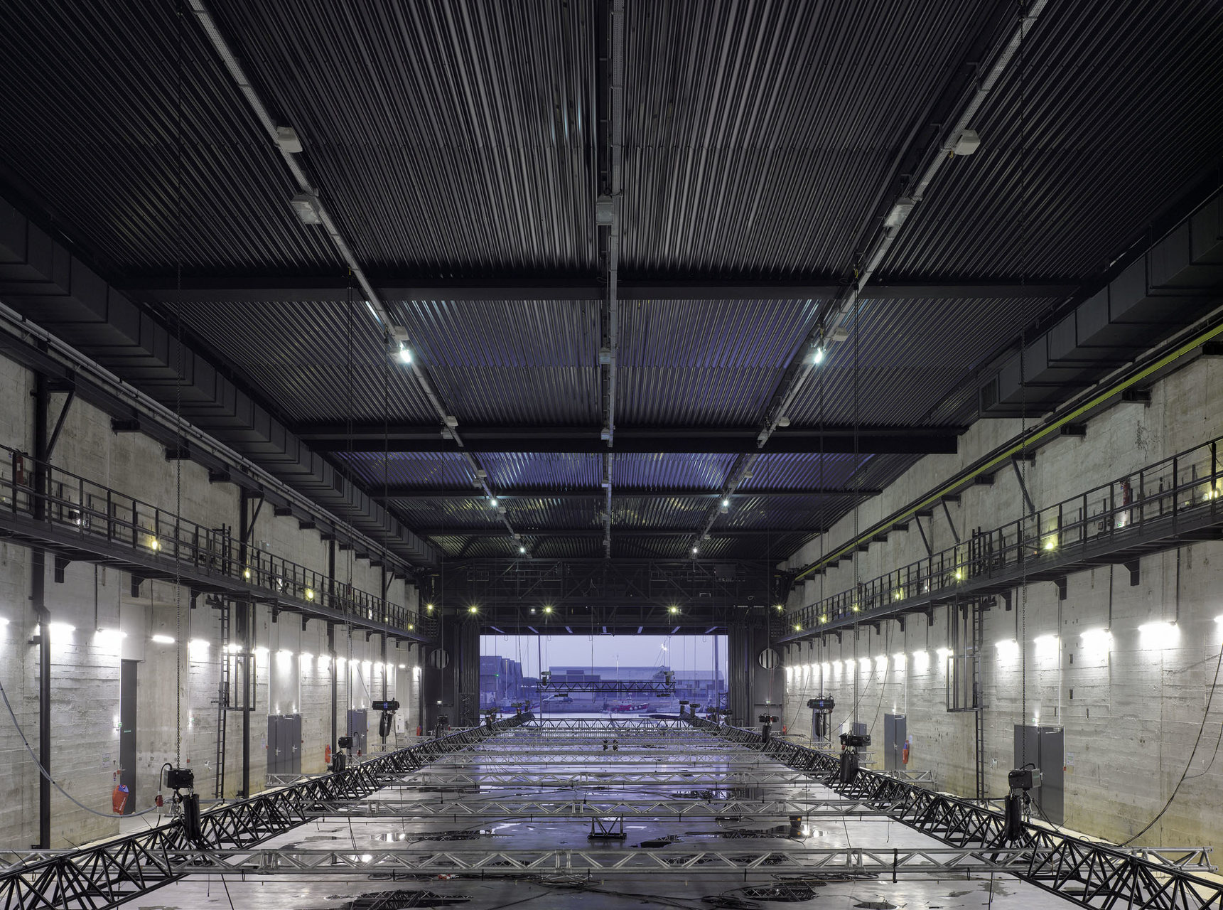 Ganz anders die von dem Berliner Finn Geipel umgebauten Becken 13 und 14 der Basis. Unlängst wurden dort die neuen Räumlichkeiten des VIP, eines Zentrums für alle Arten von nichtklassischer Musik, und das neugegründete LIFE, eine multidisziplinäre Bühne für avancierte Kunstformen, eingeweiht. Der Umbau bewahrt bewusst das brutalistische Ambiente. Sichtbarste Eingriffe sind zum einen die Überdeckung des Beckens 14 mit einem Betonboden, über dem zurzeit farbige Laserstrahlen synchron zu elektronischen Klängen geometrische Formen in den Kunstnebel stanzen – eine hypnotisierende Installation von Edwin van der Heide. Und zum andern die Schaffung einer Treppe sowie eines Aufzugs, die zu einer nachts von innen erleuchteten Radarkuppel auf dem Dach führen. Der monströse weisse Pilz, der Hergés «Etoile mystérieuse» zu entstammen scheint, dürfte zu einem neuen Wahrzeichen der mit ihrem Hafen versöhnten Stadt werden.