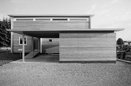 Wegen der speziellen Bodenverhältnisse steht das Haus auf 14 m tiefen Betonpfählen und ist um einen halben Meter über das Terrain angehoben. Sichtbetonfassaden nach Osten und Westen, Holzverschalung auf der Nord- und Südseite. (Text: Otto Kapfinger in „Baukunst in Vorarlberg seit 1980, Hrsg. VAI / KUB“)