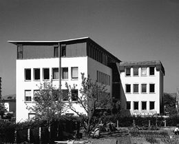 Das Grau der Untersicht entspricht den Wänden, ist aber viermal so hell getönt. Den Verhältnissen im übrigen Haus angepasst, wurde auf eine eigene Klimatisierung der neuen Direktions- und Konferenzräume verzichtet, die thermische Qualität des Ausbaus jedoch mit Computersimulation optimiert. Ein scheinbar alltägliches Projekt, technisch und formal jedoch ein hochkomplexer Eingriff. (Text: Otto Kapfinger in „Baukunst in Vorarlberg seit 1980, Hrsg. VAI / KUB“)