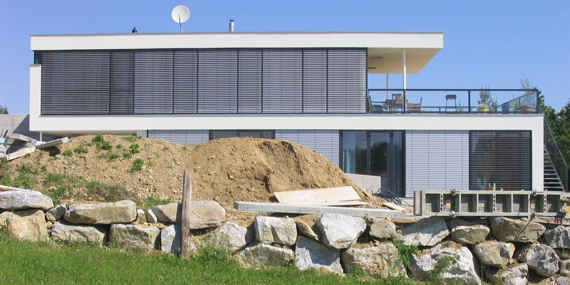Haustechnik/ passive Sonnenenergienutzung durch Grundrisszonierung und Südorientierung/ aktive mit Warmwasserkollektoren zur Brauchwasserwärmung/ Restwärmebedarfsdeckung mit Gasbrennwertkessel in Kombination mit Luftwärmetauscher mit Wärmerückgewinnung und Einzelofen im Wohnraum/ Wärmeverteilung über kontrollierte Raumlüftung und Fußbodenflächenheizung.