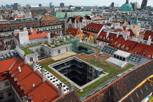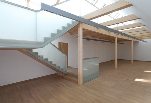Auch beim Dachgeschoßausbau fanden das Bundesdenkmalamt und die Architektenzu einer produktiven Lösung: Die Dachfläche zur Wallnerstraße hin blieb unberührt, dafür durften hofseitig große Fensteröffnungen eingebracht werden, was eine ausreichende Belichtung der Räume gewährleistete.