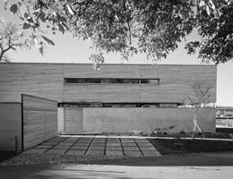 Das Ganze ist jedoch asymmetrisch gelockert, indem aus dem Erdgeschossprisma ostseitig ein Sechstel durch den überdachten Freiplatz „herausgeschnitten“ ist und aus dem Obergeschoss im selben Ausmaß eine gerahmte Terrasse an der Westseite. (Text: Otto Kapfinger in „Baukunst in Vorarlberg seit 1980, Hrsg. VAI / KUB“)
