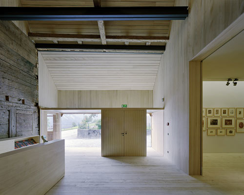 Bei der Adaptierung des Wirtschaftstraktes bestand die architektonische Herausforderung daher vor allem darin, den museologischen Anforderungen eines Kunstmuseums gerecht zu werden, ohne den Charakter des bäuerlichen Althauses zu verletzen. Das Foyer mit offenem Dachstuhl vereint Altes und Neues in klarer Unterschiedenheit. Das unbehandelte, noch nicht patinierte Weißtannenholz von Wänden und Möbeln hebt sich von der dunklen Blockwand des Wohntrakts ab, zum Abfangen der Dachlasten wurden als Gegenstück zu den alten Tramen Stahlträger eingesetzt. Der sägerauhe Tannenboden führt in den Ausstellungsraum hinüber, dessen Längswände jeweils durch drei flache Nischen gegliedert werden. In den verglasten Zwischenräumen kommen die Stahlprofilböcke zum Vorschein, die die Dachlasten abfangen. Die Klarheit des mit avancierter Technik ausgestatteten Ausstellungsraums unterstützt die Konzentration auf die oft sehr feinteiligen Exponate. Für die Bespielung des neuen Museums hat sich im Mai 2006 der Förderverein „Freunde Angelika Kauffmann Museum Schwarzenberg“ konstituiert, der im Sommer 2008 die Sonderausstellung „Angelika Kauffmann – Briefe ans Vaterland“ ausrichten wird. (Text: Gabriele Kaiser)