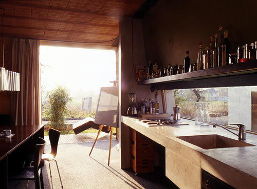 Der Keller ist lediglich eine kühle „Schatzkiste“ (ca. 1,4 m x 1,6 m 1,2 m hoch), im Erdreich liegend, durch eine Klappe neben der Küche zugänglich. Absicht ist auch, die Grundgedanken dieses Hauses in größere Wohnprojekte zu transportieren. Die zweite Haushälfte ist fertig eingerichtet und dient im Moment als Musterhaus für Interessenten. (Text: Arno Bereiter)