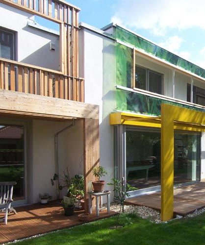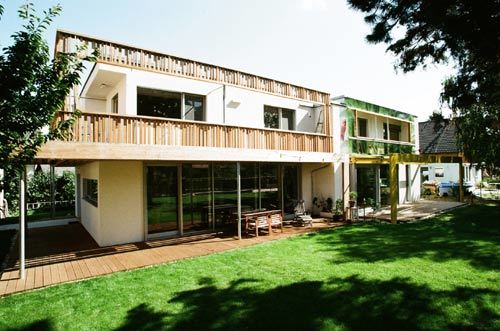 Die Häuser wurden in Holzmassivbauweise (Kreuzlagenholz) als Niedrigenergiehäuser mit Gründach errichtet, die Heizung und Warmwasserbereitung erfolgt durch eine Wärmepumpe, ein Nutzwasserkreislauf ist installiert, sie sind geprägt von der intelligenten Kombination von high-tech und low-tech.