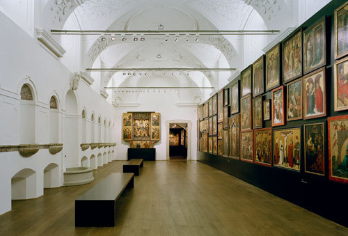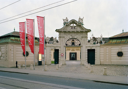 Auch das Untere Belvedere (Orangerie) wurde nach umfangreichen Umbauarbeiten durch die Architektin Susanne Zottel als Wechselausstellungshalle neu eröffnet (siehe gesonderten Eintrag). Der flankierende Prunkstall, einst für die Leibpferde Prinz Eugens errichtet, wurde von den Kuehn Malvezzi für das neue „Schatzhaus Mittelalter“ adaptiert. Die denkmalgeschützte barocke Schlossanlage des Belvedere mit dem weitläufigen Garten wurde von Johann Lukas von Hildebrandt 1714-23 für Prinz Eugen von Savoyen errichtet und dient als erstes öffentliches Museum Österreichs bereits seit dem späten 18. Jahrhundert als Ausstellungshaus. Durch verschiedene Umbauten vor allem in der Nachkriegszeit des 20. Jahrhunderts wurden die Gebäude jedoch stark verändert und in ihrer Raumwirkung wesentlich beeinträchtigt. Durch einen sensiblen Rückbau haben die Berliner Architekten Kuehn Malvezzi in enger Abstimmung mit dem Österreichischen Bundesdenkmalamt das Untere Belvedere für die neue Nutzung als Wechselausstellungshalle adaptiert und mit dem behutsamen Einbau einer umfangreichen technischen Infrastruktur für klimatische und lichttechnische Ausstellungsbedingungen nach heutigen Museumsstandards gesorgt. Ohne die äußere Gestalt zu verändern, wurde die barocke Großräumigkeit des Unteren Belvedere wieder belebt. Die Sichtachsen des barocken Palais wurden reaktiviert und ermöglichen ein authentisches Erleben des Ensembles. Große Glastüren beidseitig des zentralen Marmorsaals führen die barocke Hauptsichtachse aus dem Palais bis zum Oberen Belvedere fort. Zwei ebenfalls verglaste Nebenzugänge in den ehemaligen Orangerietrakten gliedern symmetrisch den Gebäudekörper und öffnen weitere Sichtbezüge. Der östliche Orangerietrakt wurde innen zum neuen Eingangsbereich umgestaltet. Neben den zahlreichen Sichtbeziehungen zum gesamten Ensemble ermöglichen die erhaltenen Strukturen eine Gliederung des Ausstellungsrundganges. Mit weit mehr Ausstellungsflächen ermöglicht die räumliche und technische Adaptierung des ehemaligen Prunkstalls nun erstmals die Präsentation des gesamten Mittelalter-Sammlungsbestands. Unter dem Titel „Schatzhaus Mittelalter“ werden im Schaudepot Skulpturen, Malerei und Altäre in teilweise monumentaler Größe dauerhaft gezeigt. Im Oberen Belvedere wurde zusätzlich eine besondere Ausstellungsfläche für die „Meisterwerke der Mittelalters“ geschaffen. Augenmerk wurde auf die angemessene Präsentationsform der älteren Kunst in den barocken Räumen gelegt. Ein neues Außenleitsystem erleichtert die Orientierung im neu organisierten Museumsensemble und Park. Fahnen markieren von der Ferne die Zugänge von der Straße und Eingangsbereiche, während beleuchtete Informationsstelen über die weitläufige Barockanlage führen. (Text: Architekten)