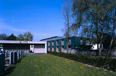 Wie schon beim Altersheim in Ramsen wurde der Erschließung und dem Übergang in die individuellen Wohnräume grosser Wert beigemessen. Der Korridor dient nicht der blossen Erschließung. Er bietet, nebem dem Aufenthalt im eigenen Zimmer und der öffentlichen Cafeteria im Erdgeschoss, zusätzliche Aufenthaltsmöglichkeiten verschiedenen Charakters. Die Orientierung des Gebäudes, die parallele Schichtung sowie die Anordnung der Fensteröffnungen und Glasoblichter erlaubt eine optimale Belichtung der Erschließungs- und Aufenthaltsbereiche. Sie orchestrieren das Gebäude wie eine Sonnenuhr: die Atmosphäre wechselt entsprechend Wetter, Tages- und Jahreszeiten.