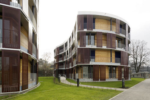 Aus diesem Vorspann entwickelten die Architekten Hörburger, Kuess, Ritsch und Schweitzer in Planungsgemeinschaft den Wohnpark Sandgrubenweg. Das innovative Pilotprojekt umfasst vier organisch geformte Baukörper mit insgesamt 76 Wohnungen. Auf einem Grundstück neben dem ungenutzten Werksgelände einer großen Textilfirma - recht zentral in Bregenz gelegen - wurden die ersten beiden Einheiten bereits bezogen. Die anderen zwei sind zurzeit in Bau.