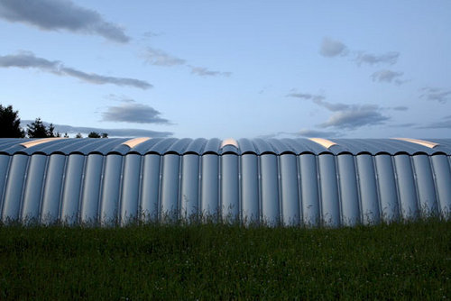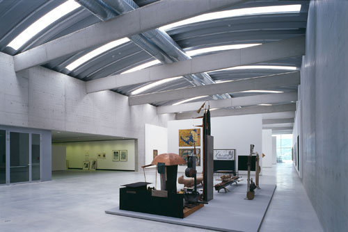 »Die billigste Außenwand, die man nach heutigem Stand der Technik produzieren kann, ist eine Kellerwand«, sagt Jakob Dunkl. »Genau so ist das gesamte Museum konzipiert. An den paar Stellen, an denen das Bauwerk den Hang durchbricht, haben wir uns ganz normaler Industriebauweise bedient, wie man sie in jedem Gewerbegebiet vorfindet.« Die Kombination machts. Obwohl an der Außenseite Wellblech, Trapezblech, handelsübliche Lichtkuppeln und 08/15-Stahlbauteile zum Vorschein kommen, wirken diese im Dialog mit der sanften, samtig weich dahinfließenden Landschaft um ein paar Nuancen verfeinert und veredelt.