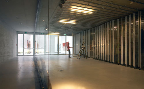 Kosten wurden durch die unterirdische Bauweise gleich doppelt gespart. Nicht nur durch die Senkung des Baubudgets, sondern auch die Betriebskosten ließen sich durch das umliegende Erdreich, das als wertvolle speicherfähige Masse mit entsprechender Trägheit fungiert, auf ein Minimum reduzieren. »Wir brauchen keine fossilen Brennstoffe«, sagt Reinhold Jamer, zuständiger Haustechniker im Museum. »Gekühlt und geheizt wird bei uns mittels Erdwärme und Wärmepumpe, wobei die Energie über eine Fußbodenheizung in die Räume geschleust wird. Der wirklich große Vorteil gegenüber öffentlichen Einrichtungen jedoch ist, dass wir die Ausstellungsräume nicht rund um die Uhr temperieren und lüften müssen, sondern die Anlage je nach Bedarf ein- und ausschalten können.«