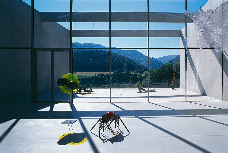 Das bereits unter Denkmalschutz stehende Privatmuseum in Kärnten wurde um Präsentationsräumlichkeiten sowie zusätzliche Depotflächen erweitert. Allesamt liegen eingegraben unter der Erdoberfläche, weil sich dadurch Bau- und Unterhaltskosten minimieren ließen. Zudem bleibt das liebliche Landschaftsbild unangetastet. Durch Rohbaucharme und die Inszenierung natürlicher Lichtquellen entsteht ein höhlenartiger, archaischer, bisweilen sakraler Charakter, dessen Sinnhaftigkeit sich jedoch nicht überall erschließt.