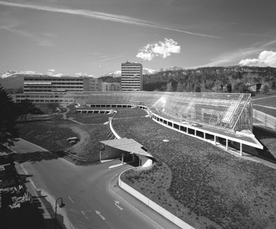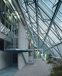 Während hier der umliegende Park die Atmosphäre prägt, ist es im Fall des Medizinzentrums Anichstraße in Innsbruck die Stadt, die über große Fenster ins Gebäude geholt wird. Hier passiert nicht Isolation von der Außenwelt, wie etwa im Allgemeinen Krankenhaus mitten in Wien, sondern Aufenthalt in einem öffentlichen urbanen Bereich mit Innenhöfen, Loggien und Ausblicken. Paul Katzberger und Michael Loudon, nicht gerade Männer übertriebener und vordergründiger Gesten, ließen sich auch hier nicht vom Übermaß an Anforderungen beeindrucken und behandelten das Projekt mit der gleichen Nähe und Sensibilität wie ein privates Projekt.