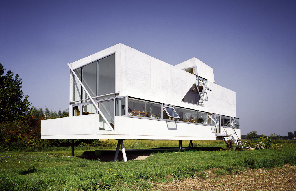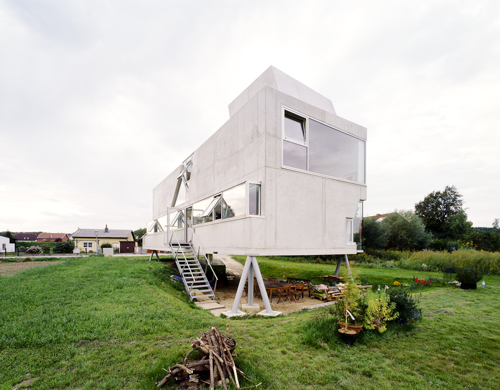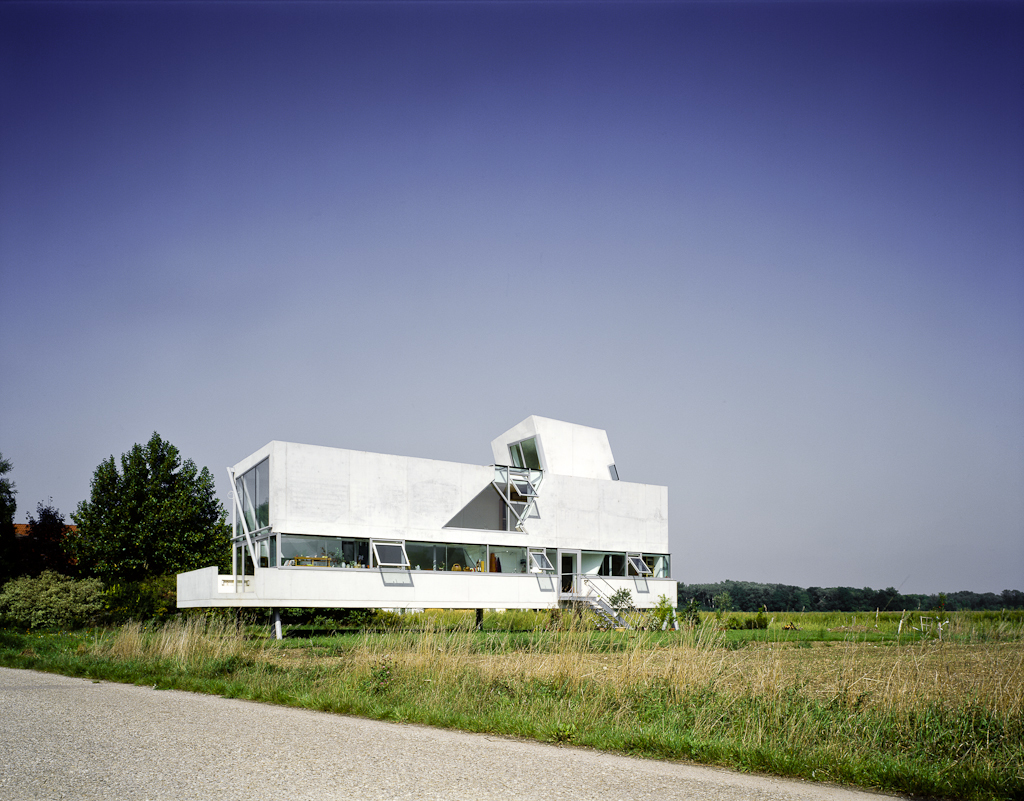 Am Rand der Donauauen steht ein gestrandetes Schiff der Architekten Wolfgang Tschapeller und Wolfram Mehlem. Das bizarre Betonobjekt will vor allem eines: sich von den gängigen Bildern 08/15-Wohnens verabschieden.