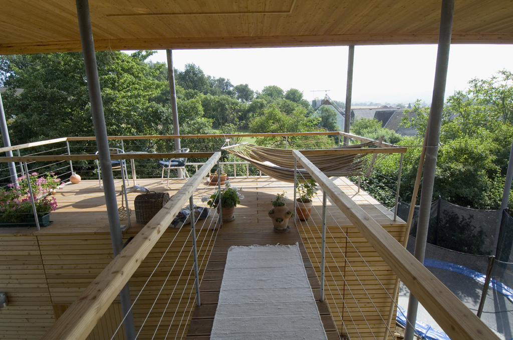 Biologisches Niedrigenergiehaus: Ein Pelletsofen als Zusatzwärmepol unterstützt die kontrollierte Wohnraumlüftung.