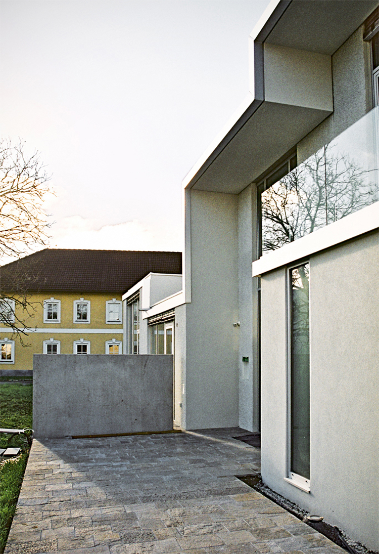Einen alten Baum verpflanzt man nicht", befand Firmengründer Karl Prillinger mit einem Hang zu großen Metaphern und beschloss kurzerhand, auch nach der Übergabe seiner Firma weiterhin auf dem Betriebsgelände zu wohnen. Ursprünglich war geplant, eine der Wohnungen im alten Vierkanter nebenan auszubauen. Doch das beauftragte Architekturbüro lobmaierstockinger schlug vor, stattdessen gleich ein Haus zu bauen - und zwar im ehemaligen Baumgarten direkt am Firmensitz.