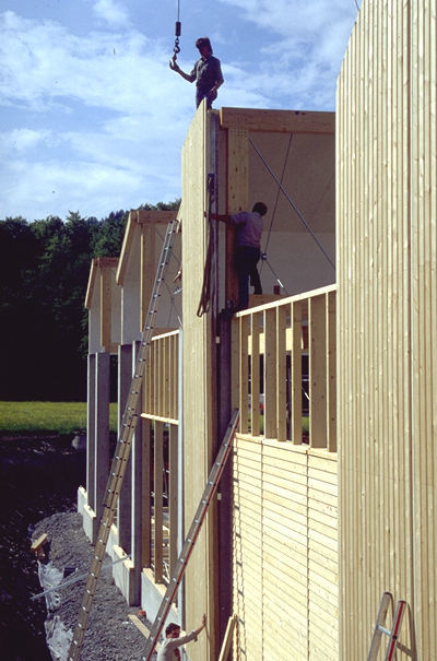»Ich bin der Meinung, dass Massivholz nach wie vor das beste ist. Alles andere, jeder Holzwerkstoff ist eigentlich von der Haltbarkeit her schlechter als Massivholz, als das normale Holzbrett. Das ist einmal ein Grundsatz, für den es noch keinen Gegenbeweis gibt. Eine zweite Grundsatzentscheidung liegt in der Steuerung des Verwitterungsprozesses. Da gibt es zwei Strategien, die sich natürlich architektonisch auswirken: Der Versuch, das Holz wirklich zu schützen oder konsequentes Verwittern.«