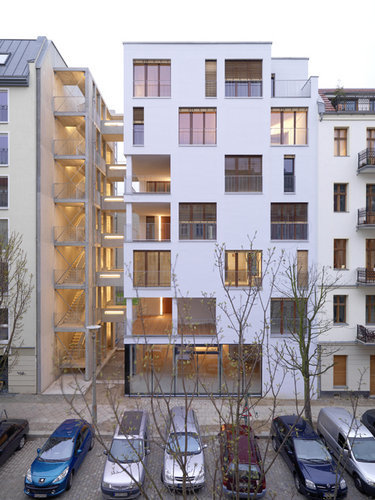 Ein Siebengeschosser in Holzbauweise inmitten der Stadt? – Vor Jahren noch hätte dies niemand für möglich gehalten, insbesondere nicht im „steinernen Berlin“ des neuen Bauweisen gegenüber wenig aufgeschlossenen Senatsbaudirektors Hans Stimmann. Doch gerade dort haben nun zwei Architekten ostdeutscher Herkunft den Beweis angetreten, dass sehr wohl sein kann, was nicht sein darf, nämlich eine siebengeschossige Wohnbau-Holzkonstruktion im gründerzeitlichen Karree. Mit etwas Chuzpe und viel Intelligenz gelang es den Architekten Tom Kaden und Thomas Klingbeil, alle Bedenkenträger auszumanövrieren und einer Baugruppe ein auch räumlich bemerkenswertes Haus zu schaffen.
