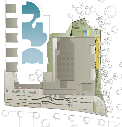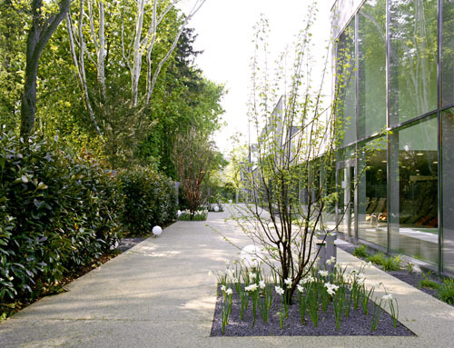 Die Landschaftsgestaltung wurde von uns bereits in der Wettbewerbsphase im Frühjahr 2004 konzipiert.