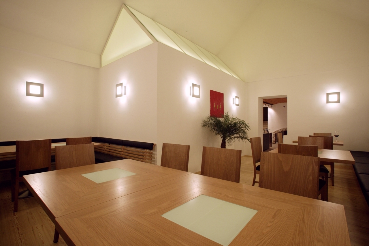 Der Streckhof wurde entkernt, im straßenseitigen Teil Präsentations- und Verkosträumlichkeiten untergebracht, der Heuboden wurde zu einer Wohnung aus- und umgebaut. Das ehemalige Stallgebäude dient in den verschiedenen Geschossen zur Unterbringung der Hackschnitzelheizung, Personal- und Nebenräume sowie Labor und Haustechnikbereiche. (Text: Architekt)