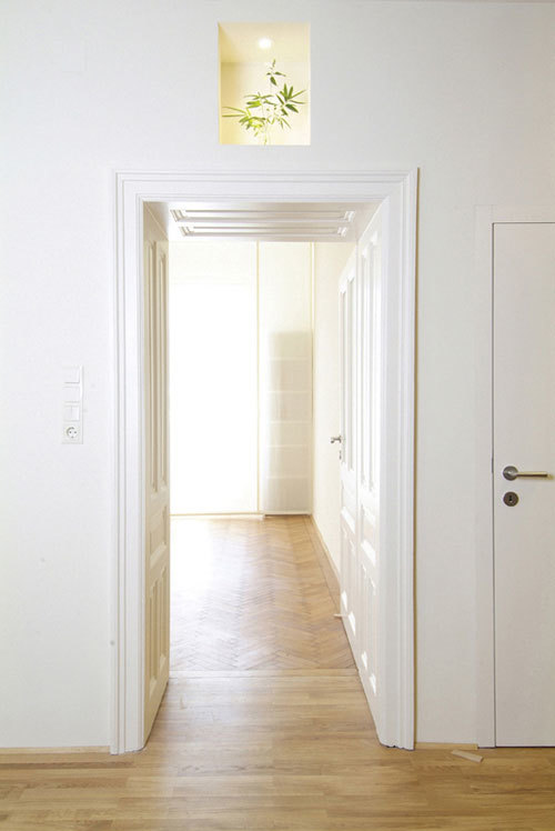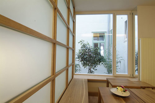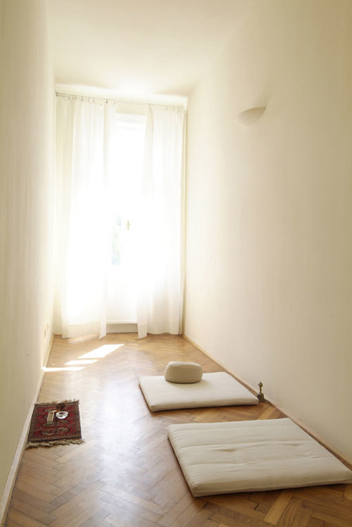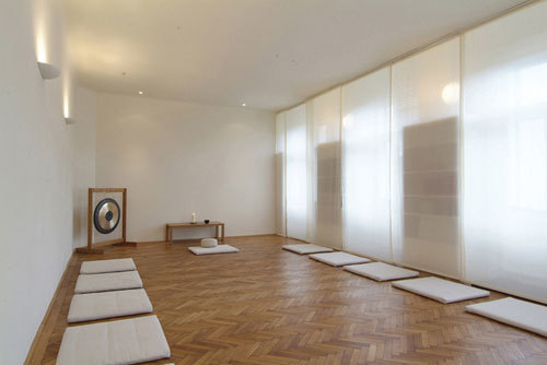 In der atmosphärisch differenzierten Abfolge von Eingangsbereich, Garderobe, Teezimmer und Sakralraum wird der Besucher in einen Ort der Stille geführt. Durch eine subtile Farbgestaltung, Raumakustik und die Beschränkung auf elementare Einrichtungsgegenstände konnte inmitten eines Gründerzeitzinshauses eine in sich ruhende Gegenwelt geschaffen werden. (Text: Gabriele Kaiser)