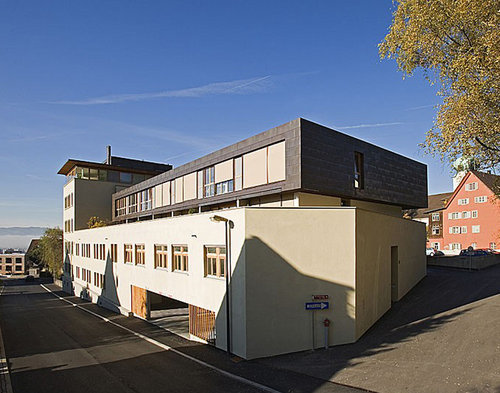 Mit der Revitalisierung wird dem prächtigen und einzigartigen Komplex Rechnung getragen. Die neuen Funktionen sind vielfältig: Zweigeschossige Wohnungen, Lofts, Praxen, Büros und Gewerbebetriebe beleben dieses zentrale Areal neu. In massiver Bauweise wird weiter gebaut, die Neubauteile sind jedoch mit ihrer Kupferhülle deutlich erkennbar. Auf den dominanten Turm wird ein halbes Geschoß für Wohnungen draufgesetzt und durch die Anhebung des Daches lichtdurchflutet. Die Themen Denkmalschutz, Details, Ökologie und Wirtschaftlichkeit beschäftigten Bauherrn und Architekten ausgiebig. Ergebnis ist die Symbiose von überlieferter und zeitgemäßer Architektur in einem besonders wertvollen Stadtteil Dornbirns. (Text: Martina Pfeifer-Steiner)