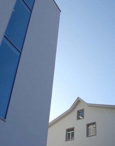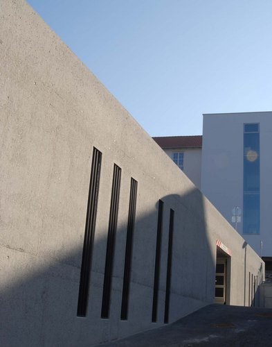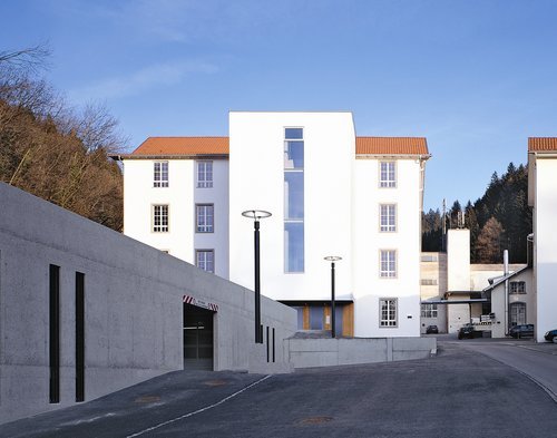 Die Fassaden bleiben erhalten, werden nur renoviert. Ein freistehender Stiegenhausturm aus Stahlbeton wird an der ehemaligen Schussspulerei angesetzt, die niedrigen Hallen rundherum entfernt und mit einem dreigeschossig in die Tiefe gehenden Parkdeck ersetzt. Hier wird in Zukunft noch ein neues Bürohaus errichtet. Auch die Hallen der alten Musterweberei werden mit loftartigen Büros mit moderner Haustechnik und individuellen Einteilungskonzepten wieder belebt. (Text: Martina Pfeifer-Steiner)