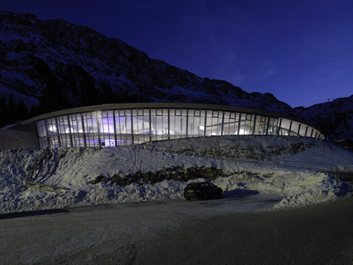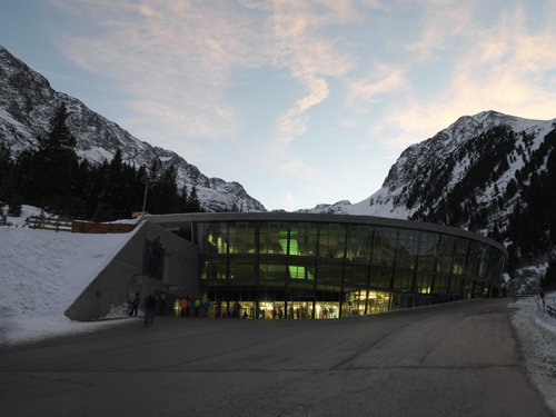 Mit dem Gletscherterminal erhielten die bestehenden Gebäude der Talstation der Stubaier Gletscherbahnen eine neue Erschließungsfläche. Der Zubau, der dem Schutz der Besucher vor Witterung und Lawinen dient – die gesamte Gebäudehülle ist auf Lawinenlast ausgelegt – verbindet gleichzeitig die heterogenen Bestandselemente mit einem zusammenfassenden Element und lässt die Talstationen der Einseil- und Zweiseilumlaufbahn erstmals als eine Einheit erscheinen.Der in seinen Dimensionen auf die Beförderungskapazitäten abgestimmte Neubau ist als zeitgemäßes Funktionsgebäude ausgeführt, das die spannungsvolle Balance zwischen Landschaft und Bauwerk zu halten versucht. Gestaltgebend fügt sich die Kurve des begrünten Daches, das im Winter mit einer dicken Schneeschicht überzogen ist, als architektonische Geste in die umliegende Berglandschaft. Darunter ummantelt eine transparente Hülle den Erschließungsbereich, welcher mittels Rampen zu den Bahnen führt. Durch die Kombination der gewählten Materialien ergibt sich eine edle, für eine Talstation nicht alltägliche Optik, die im Kontrast zur kargen Berglandschaft der Stubaier Gletscher steht. Ein modernes und einladendes Portal entstand, dessen transparente Fassaden Ausblicke in die Berglandschaft erlauben und damit eventuelle Wartezeiten verkürzen. (Text: Claudia Wedekind nach einem Text der Architekten)