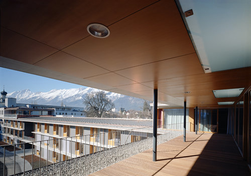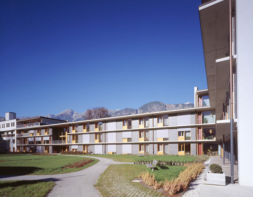 Allen Heimen gemeinsam ist die rücksichtsvolle Höhenentwicklung am Rand der Altstadt, sodass die Aussicht auf die Türme der Stadt und auf die für Hall so charakteristischen Bergpanoramen nicht gestört wird. (Text: Architekt)