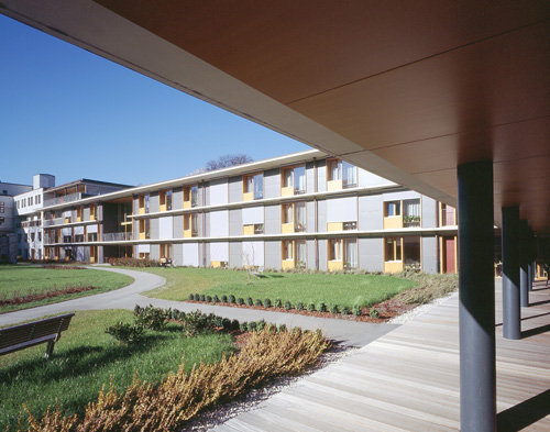 Der Absicht, die einzelnen Heime eigenständig zu führen, entspricht architektonisch ein jeweils Identität stiftendes Konzept: Säumen im Falle „Haus im Stiftsgarten“ beide Gebäude eine baumbestandene, in ihrer Proportion auf die Altstadt verweisende Gasse, umfängt das „Haus im Seidnergarten“ einen großzügigen, nach Süden hin offenen Garten, auf den sich ein Großteil der Zimmer ausrichtet. Das dritte Heim, „Haus im Magdalenengarten“, nur unterirdisch mit den beiden vorgenannten verbunden, setzt den Schlusspunkt als freistehender Solitär im Grünen, mit einem diesen Haustyp charakterisierenden Innenhof.