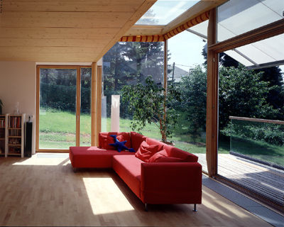 Andreas und Gerda Gerner haben aber kein Energiesparhaus im engen Sinn geplant, dafür sind sie mit den Glasflächen viel zu großzügig umgegangen. Dafür nutzt ihr Haus die Gunst des Standortes optimal aus und die heutigen Möglichkeiten mit Holz und Glas. Die Großzügigkeit der innenräumlichen Lösung, ihre Offenheit und Transparenz muß man mögen. Andererseits: Nicht nur Bautechnologien entwickeln sich, unaufhaltsam ändert sich auch das Wohnverhalten. Für die Architektur ist das ein Glück.