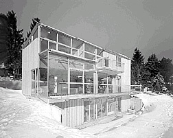 Unter den jungen Wiener Architektenteams zählen Andreas und Gerda Gerner zu den interessantesten. Man könnte sagen, daß sie „aus der Schule von Helmut Richter“ kommen, daß sie folglich Umgang mit Stahl, Glas und Aluminium pflegen und auf einen sogenannt „zeitgemäßen“ Ausdruck ihrer Bauten Wert legen. Und diese Charakteristik gilt auch jetzt noch, nach ihrem Sidestep in den Holzbau. Denn „Woodstock“ - der bürointerne Codename für das Haus auf dem Schafberg - wird zwar dem Anspruch silbrig schimmernder Metalloberflächen nicht gerecht, aber in solchen Oberflächenimages liegt ja auch nicht die Essenz dieses architektonischen Ansatzes. Ihm geht es vielmehr um den Nutzen, der sich aus bestimmten Materialentwicklungen ziehen läßt, um konstruktive Wahrheit und die Optimierung des Materialaufwandes.