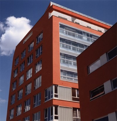 Auch die Wohnungstypologie selber orientiert sich an den umliegenden Gebäudestrukturen. Der Typus „Zeile“ wurde im Maisonettetyp umgesetzt, der Typ „Reihenhäuser“ im EG/1.OG, Dachwohnungen im 3.OG und Dach. Die Punkthaus - Charakteristik wurde in den Geschoßwohnungen umgesetzt, mit offener Laubengangerschließung und teilweise Terrassen. Als Maßnahmen zur Reduzierung der Baukosten wurden eine einfache Konstruktion - Schottenbauweise - gewählt, massive Wandanteile vermindert, und nur ein Installationsschacht pro Wohneinheit gelegt.