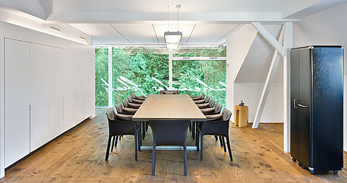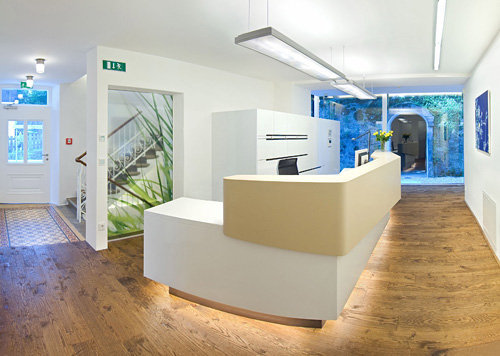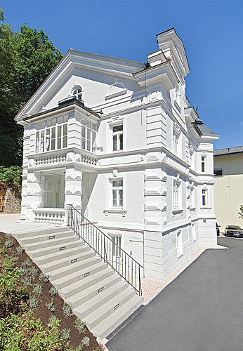 Die „Villa Tagwerker“ mit ihren drei Schaufassaden mit einer Vielzahl von Türmen, Gaupen, Gesimsen und Bossen ist die einzige noch erhaltene Stadtvilla aus dem späten 19. Jahrhundert im Kitzbüheler Stadtkern. Ihre Besonderheit und ihren Charakter zu erhalten war oberstes Regulativ für die Planung und Ausführung der Adaptierung der Villa für einen Finanzdienstleister.Ansatzpunkt beim Entwurf des neuen Nutzungskonzeptes war die schmucklose Rückfassade, wo mit einem gläsernen Turm sowohl der dringliche Wunsch der Bauherrenschaft nach einem Lift erfüllt werden konnte, als auch die Nutzfläche der Villa erheblich vergrößert werden konnte. Aus dem Kellergeschoß wurde das Erdgeschoß, was einem Nutzflächengewinn von ca. einem Drittel der Gesamtfläche entspricht. Die so gewonnene Fläche erlaubte im Inneren der Villa einen großzügigeren Umgang mit Raum und Flächen. Der turmartige Glasbaukörper führt natürliches Licht tief in den Bestand und öffnet die Villa zur angrenzenden Natur. (Text: Claudia Wedekind nach einem Text der Architekten)