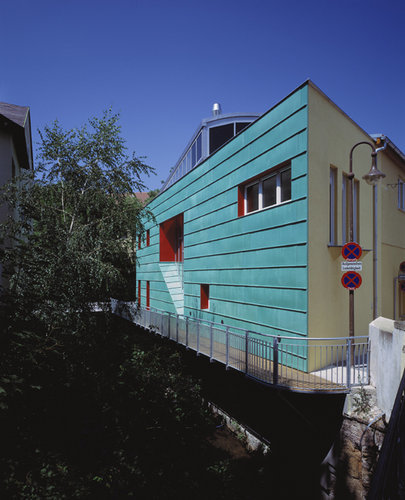 Das Obergeschoß wurde im Bereich der Seebensteiner Straße erweitert und dem Gebäude wurde ein Dachgeschoß aufgesetzt. Die bestehende Stiege wurde abgerissen und durch eine neue Treppe ersetzt. Diese befindet sich nun in einem nach oben offenen Atriumraum und verbindet die drei Ebenen miteinander. Der Haupteingang von der Triesterstraße wurde in eine über alle drei Geschosse reichende Glasfassade zurückversetzt, die Decken in diesem Bereich mussten zugunsten der Glaskonstruktion weichen. Im Zuge der Umbauarbeiten wurde auch die Fassade entlang der Triesterstraße und des Werkskanals neu gestaltet. Patiniertes Kupferblech diente als Trägermaterial für die neue Einfassung. Entlang des Werkskanals verbindet nun ein Gitterroststeg die Triesterstraße mit der Seebensteiner Straße. Eine Einfriedungsmauer mit einem Schiebetor und einer Türe begrenzt den Innenhof, der längs dieser Mauer überdacht wurde.