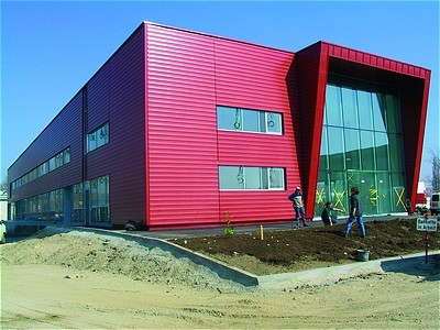 Die Regina Großwäschereien und die Wäschereien für sterile OP-Wäsche befinden sich schon seit Jahrzehnten auf diesem Areal. Nun hat Geschäftsführer Josef Kotzinger den Betrieb um einen neuen Bereich erweitert – die OP-Vollversorgung. Die Errichtung einer neuen Halle war notwendig für dieses spezifische Dienstleistungsangebot der Instrumentenreinigung für Spitäler. Quer zum Bestand setzt die neue Halle ein starkes architektonisches Zeichen. Keine langweilige graue Kiste, sondern ein charakteristisches Betriebsgebäude in leuchtendem Rostrot. Weithin sichtbar ist diese rot lackierte Aluminiumfassade, gegliedert durch graue Fensterbänder. Ein leicht ansteigendes Dach und die schräg verlaufende, auskragende Stirnwand im Eingangsbereich lassen den Industriebau trotz seiner Dimension von fast 60 m Länge nahezu schwebend erscheinen.