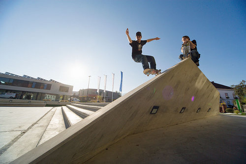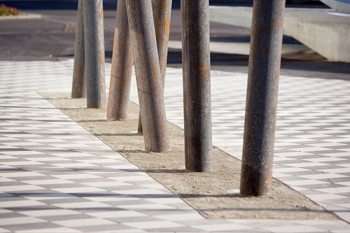 Zwischen nördlichem und südlichem Teil wird ein Veranstaltungspodium errichtet, das eindeutig die zwei unterschiedlichen Platzzonen voneinander trennt. Die nötige Infrastruktur für unterschiedlichste Veranstaltungen wird im Podium, bzw. in der Bühne, integriert. Die Bühne ist ein dreidimensional gefaltetes Betonelement, das sowohl dem nördlichen, als auch dem südlichen Platzteil zugeordnet werden kann.