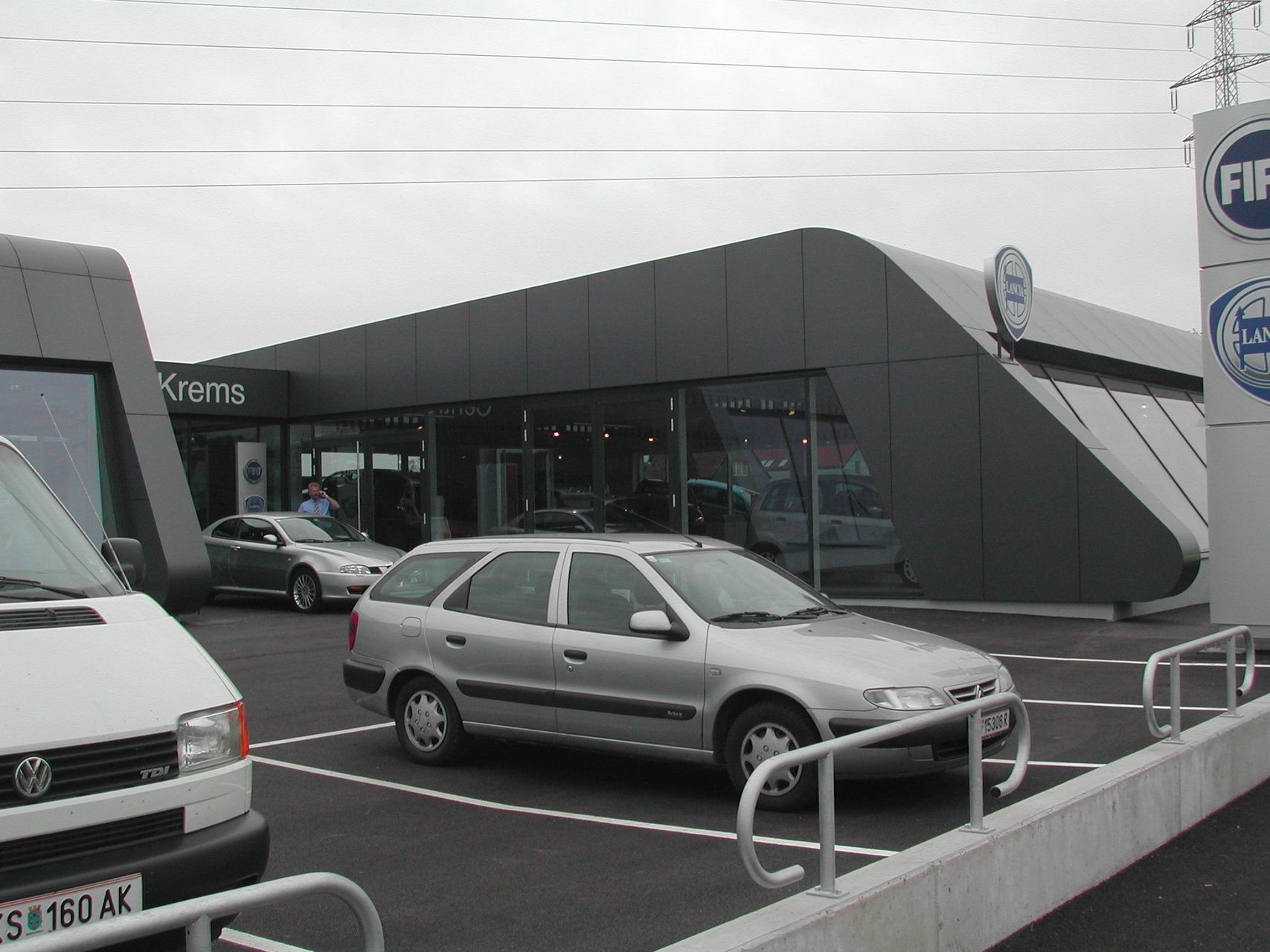 Das Projekt nützt das leicht nach Norden abfallende Gelände, um die verschiedenen Freiflächen (Fahren, Parken, Gebrauchtwagenschau, Neuwagenpräsentation etc.) und die Gebäude zu einem das ganze Grundstück modulierenden Raum-Flächen-Kontinuum zu gestalten. Die Gliederung der Volumina und die Abstufung der Gebäude nach Norden wurden vom Gestaltungsbeirat sehr positiv beurteilt.