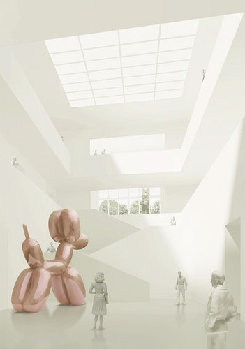 David Chipperfield hat dieses Anliegen selbst in einem Gespräch mit dieser Zeitung hervorgehoben: «Für uns bestand die grösste Herausforderung darin, ein Gebäude zu entwerfen, das selbstverständlich die Anforderungen eines erstklassigen Museums erfüllt, das vor allem jedoch einen Bezug herstellt zu dem Platz davor und dem Park dahinter. Das Museum ist ein öffentliches Bindeglied.» Auf der Computersimulation für den Wettbewerb ist diese Idee, mit dem Neubau einen öffentlichen Ort zu schaffen, noch dadurch verstärkt, dass die Fahrstrasse, die derzeit das Kunsthaus von der Pavillon-Insel trennt, aufgehoben und die Fläche als durchgehender Platz gestaltet ist.