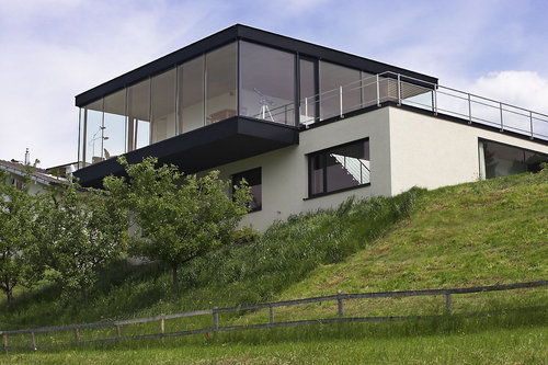 Auf einem der Feldkircher Hügel werden Wünsche wahr. In traumhafter Lage wird der Panoramablick nur durch den Himmel und weit entfernte Berge begrenzt. Die Architektur nimmt sich dabei vornehm zurück.