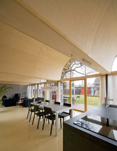 Der Grund ist klein, die Nachbarschaft hoch. Keine Chance zu konkurrieren - also durchtauchen, eingeschossig unter den Blicken und dem Lärm der Stadt. Auf Abstandsflächen muss verzichtet werden, zumindest im Norden , Osten und Westen. Lieber tagelang mit Nachbarn verhandeln, als ein Leben lang ohne Platz vor der Hütte.