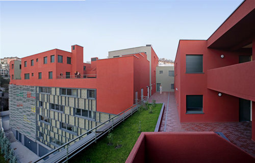 Zum Wohnteil im 4. Stock gibt es einen Zugang von der Privatstraße, alles ist sorgfältig verplant, als gesonderte Einheiten mit Terassen und auf zwei Ebenen. Insgesamt gibt es 20 Wohnungen, die im Durschnitt 160 m² groß sind. (Text: Architekt)
