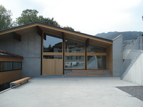 Selbst mit den atmosphärischen Vorzügen des Holzes aufgewachsen, soll er nun die Hautpschule Egg in eine neue bautechnische Ära geleiten. Die geplanten Maßnahmen konzentrieren sich auf die bauphysikalische Nachrüstung der Schule, insbesondere in akustischer und thermischer Hinsicht. Dabei erweisen sich die vorhandenen Holzbauteile als ideal: Die Außenelemente der Nord- und Südwand können komplikationslos ausgebaut, in der Werkstatt gedämmt und anschließend wieder montiert werden. Zur akustischen Nachbesserung der Klassenzimmer wird die bestehende Täfelung ersetzt. Proportionen und Holzart der Täfer bleiben gleich, lediglich die Fugen werden offen gehalten. Raumkonzept, Lichtführung sowie Erschließung bleiben vom Umbau unberührt.