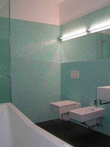 Dem Prinzip zweier unabhängiger Wohnungen folgend, wird die vorhandene Einfahrt im Süden auf die Nordseite verlegt. Der so gewonnene Platz im Süden wird zu einem intimen Garten umfunktioniert. Dort wo sich vormals der Zugang zum Obergeschoss befand, wird als neues Element eine zweigeschossige, rote Mauerscheibe hochgezogen. Dahinter verbirgt sich – nun innenliegend - der Aufgang in die obere Wohnebene. Optisch wird der neue Baukörper durch geschosshohe Glasscheiben an den Stirnseiten vom ursprünglichen Bauvolumen getrennt.